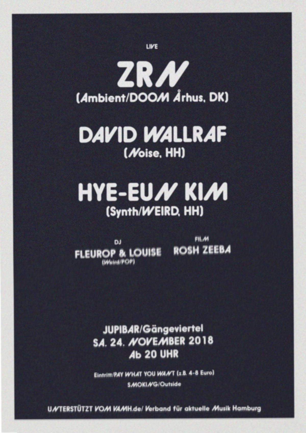 24.11.18 Jupi Bar live ZRNHYE-EUN KIM Rosh ZeebaVerband für aktuelle Musik Hamburg Gefällt mir Wird geladen … Ähnliche Beiträge