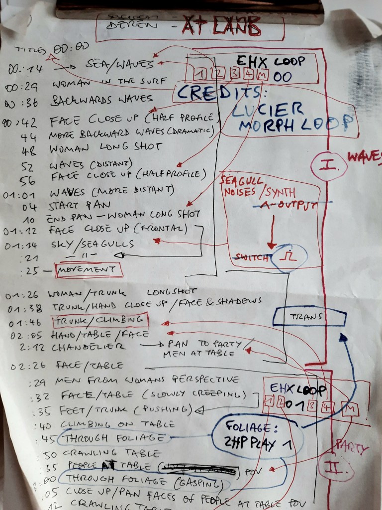 While working on the score, I felt compelled to charge the music with some sonic fragments of soviet and post-soviet history. There’s a music box that plays The Internationale (the soviet anthem until 1943), slowed down loops of various songs from the Russian revolution and civil war, samples from Elem Klimov’s 1984 film Come and See (audible during the mass panic in the Odessa Steps scene), a clicking sound taken from a soviet documentary on the Chernobyl nuclear disaster (when radiation strikes analogue recording media it produces audible clicks and visible flashes), field recordings of Russian AM-radio (recorded by Kris Kuldkepp in Lithuania, close to the Kalinigrad-exclave), a quotation of Yegor Letov’s 1988 punk song Vsyo idyot po planu (Everything is going according to the plan) in the finale of the film – a sentence that has been uttered by Russian officials during the war in Ukraine ad nauseam – and finally bits of speeches given by Vladimir Putin, Sergey Lavrov, Dmitri Medwedew and Alexandr Dugin during the past few years. These were put on tape loops and appear as the voices of czarist officers during the execution scene on the battleship.
